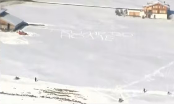 雪地上的“特朗普回家”字样。图源:GJ